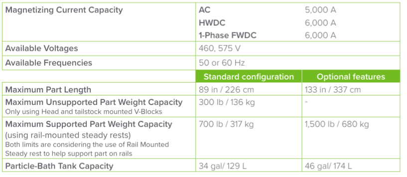 This multi-directional magnetic bench provides 5,000 amps of Alternating Current, 6,000 amps of Half Wave Direct Current, and 6,000 amps of single-phase Full Wave Direct Current. It enables efficient multidirectional magnetization, capable of detecting defects in any orientation within a single mag cycle.